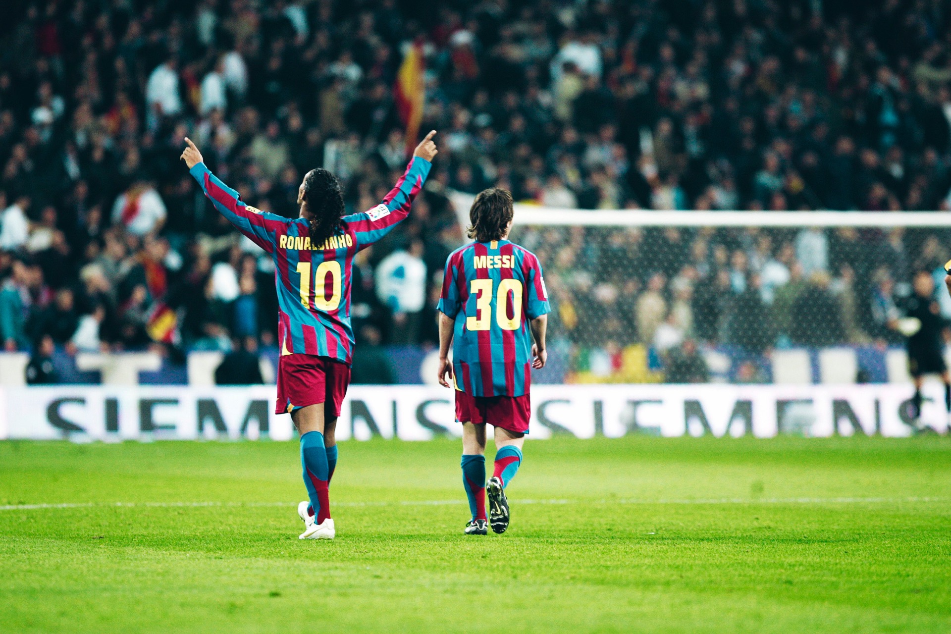 El relevo del '10' empezó aquí. Primer gol de Messi, a pase de Ronaldinho. Imaginad lo que habría sido verles a los dos juntos al máximo nivel.